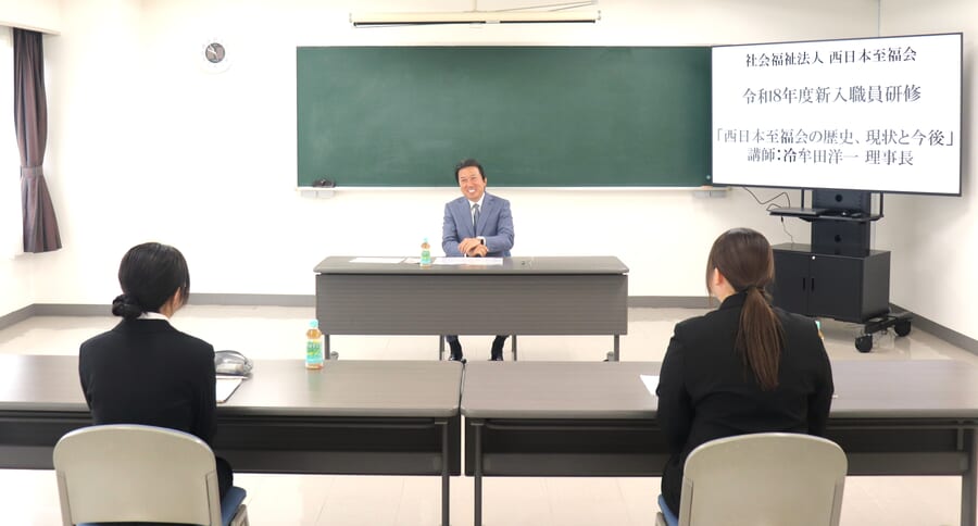 研修の様子の一場面を掲載しておりますが、当法人では笑顔を大切にしています。
