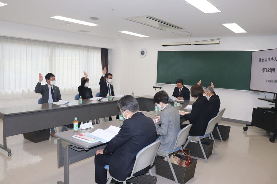冷牟田理事長が議長に選任され、6つの議案が慎重に審議されました